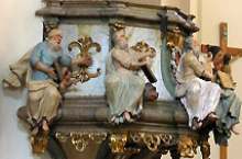 The current appearance of the inside of the church is the result of numerous changes done in time. Close to the entrance there is a balcony supported by arches on posts. The slightly curved ceiling, reinforced by four pairs of double arches and decorated with stucco, is the result of remodeling works performed in 1790 by Anton Türk, one of the most famous Transylvanian architects of the Baroque period.